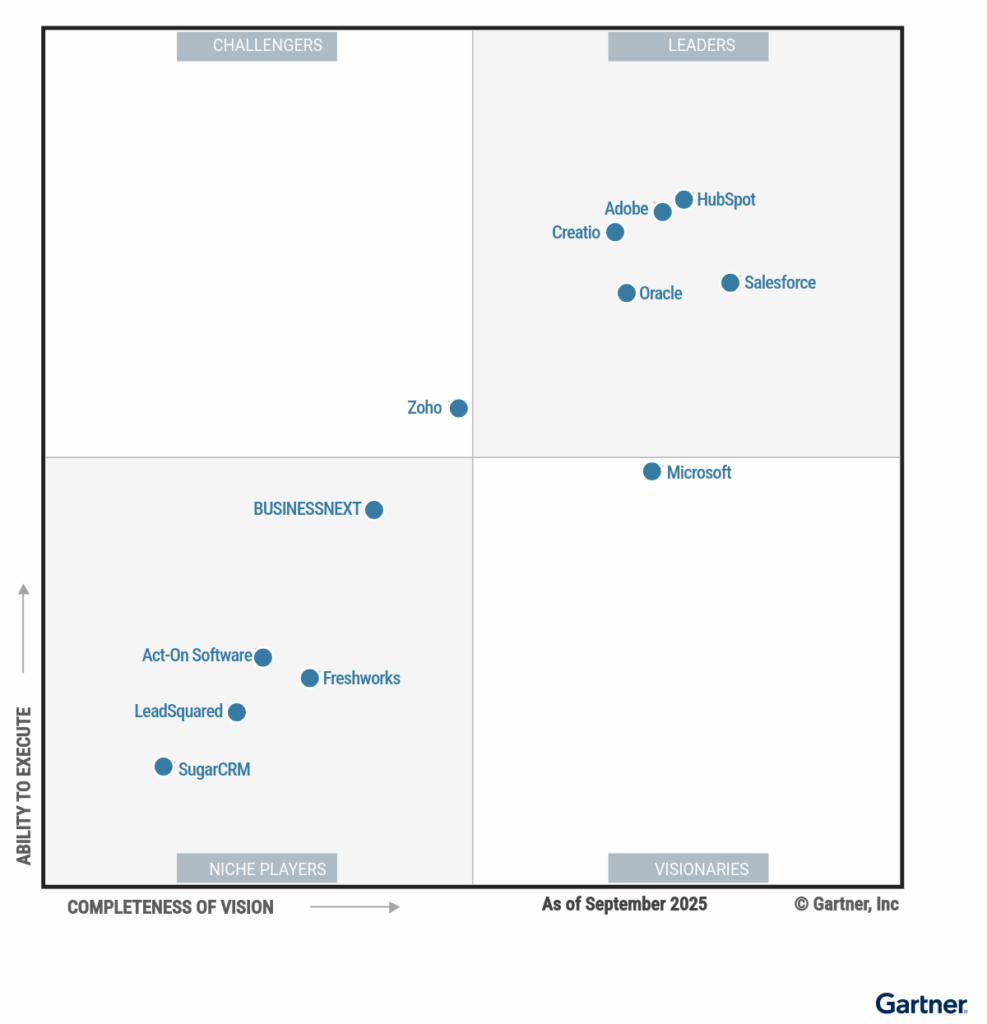 23 Eylül 2025 tarihinde yayımlanan Gartner® Magic Quadrant™ for B2B Marketing Automation Platforms raporunda Creatio bir kez daha Lider olarak konumlandı. Bu, Creatio’nun B2B pazarlama otomasyonu alanındaki istikrarlı yükselişinin ve yapay zekâ (AI) odaklı inovasyon yaklaşımının güçlü bir teyidi.
