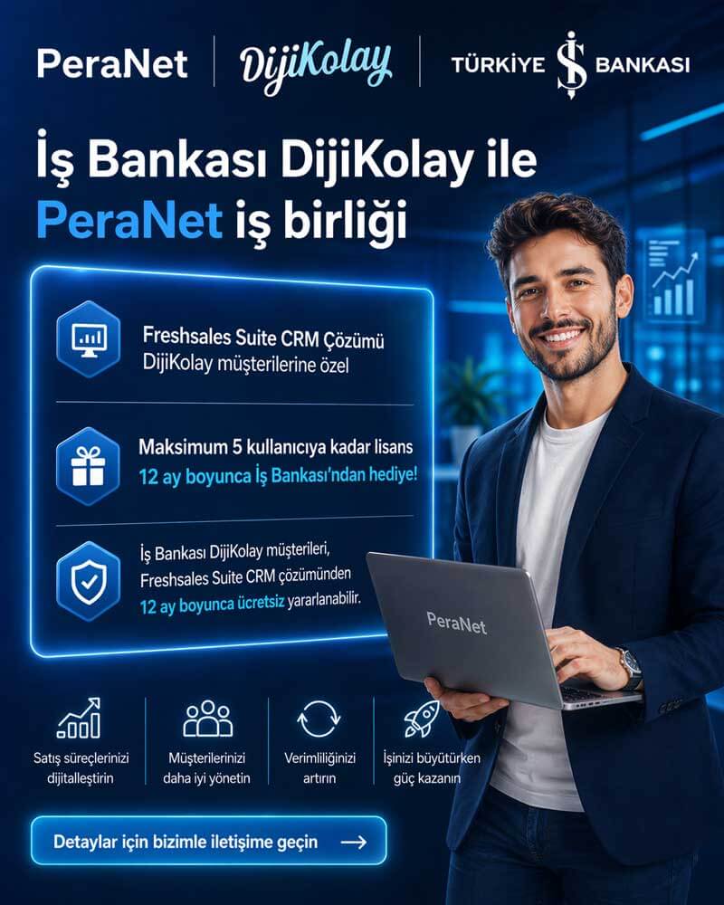 Freshsales Suite CRM Çözümü DijiKolay müşterilerimize, maksimum 5 kullanıcıya kadar lisanslar 12 ay boyunca İş Bankası’ndan hediye!